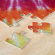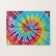 Foto de tecido tingido um padrão brilhante e colorido de gravata espiral do arco-íris. O padrão ou a foto de textura cria um quebra-cabeça de quebra-cabeça desafiador. Um jogo divertido para o seu filho na comemoração de aniversário.