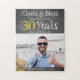 Animações informais e engraçadas e cervejas homens com fotos personalizadas de 30 anos guardam quebra-cabeça de presente com um roteiro de tipografia de rico, uma caneca de cerveja amarela, e rodopia sobre um fundo de painéis de cinzas escuros e rústicos. +++++++++++++ Adequado como presente de manutenção para qualquer festa de aniversário etária ou marco ou celebração virtual de longa distância. +++++++++ Fácil de personalizar com fotografia, idade, nome e data!
