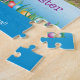 Envie esta quebra-cabeça para seus filhos ou netos essa Páscoa. Personalize-o com sua foto favorita. O design oferece uma bela ilustração de um coelho da Páscoa sentado em grama verde, espalhado por ovos de Páscoa.
