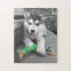 Quebra-cabeça de serra-de-vidro são divertidos em família. Aproveite esta adornada com esta fotografia de um filhote Malamute do Alasca, segurando uma corda colorida e mastigando brinquedos com patas. A fotografia foi convertida em preto-e-branco, deixando um salto de cor na língua e no brinquedo. Clique em personalizar para adicionar texto em um estilo de fonte, tamanho e cor.Fotografia ©Patricia AZ Phillips.