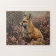 Quebra-cabeça Fox vermelha com pintura de flores silvestres cor-