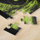 Challenge the mind with bold creativity using this Puzzle featuring Frequency Serpent. A serpentine red structure curves vertically across the pieces, marked by circular elements resembling vibrational cores, while horizontal bands of blue, green, and white flow in the background like waves of data. The interplay of intense colors and curved forms creates dynamic tension, transforming this classic pastime into a functional canvas of digital abstract art. Perfect for family fun, relaxation, or gifting to those who love puzzles with artistic flair.
