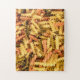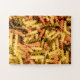 Um quebra-cabeça de quebra-cabeça com a imagem fotográfica de massas fusilli de diferentes cores que enchem o quadro. Este quebra-cabeça é totalmente personalizável. Você pode adicionar uma mensagem ou qualquer texto ou pode alterar o tamanho e a quantidade de partes do quebra-cabeça para definir o nível de dificuldade como preferir.