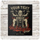Personalizado Biker Skeleton Compro Garage design, com motocicleta emblemática montando um bober personalizado. Personalize com seu nome ou texto personalizado.