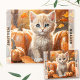 Quebra-cabeça bonitão com um adorável gatinho fofo rodeado por abóboras. Torna-se um gatilho de estoque fofo personalizado, um pequeno presente de Ação de Graças ou presente de aniversário para crianças e todos os amantes de gatos. Vem com uma caixa de carregar de cartão com uma imagem quebra-cabeça impressa na tampa! Personalize facilmente o texto ou deixe-o vazio. - Kate Eden Art