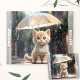 Quebra-cabeça bonitinho de serra com um adorável gatinho fofo na chuva debaixo do guarda-chuva. Faz um gafanhoto de estoque fofo personalizado ou presente de aniversário para crianças e todos os amantes de gatos. Vem com uma caixa de carregar de cartão com uma imagem quebra-cabeça impressa na tampa! Personalize facilmente o texto ou deixe-o vazio. - Kate Eden Art