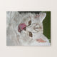 Esta quebra-cabeça de quebra-cabeça apresenta um chocolate puro masculino e uma tábua prateada de um gatinho de cabelos britânicos lambendo suas costelas enquanto olhava para o espectador.