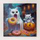 Gato branco e gato fantasma comendo rosquinhas de Halloween AI gerou arte por minx267