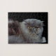 Fotografia de um lindo gato azul persa com olhos amarelos.