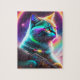 Gato Bonito E Bonito Astronauta Com Luzes Neon E Laser Gun, Cores Arco-Íris Num Estilo De Fantasia Mundial De Sci-fi, Poster de Gato Colorido Para Crianças, Quebra-cabeça de Gato,