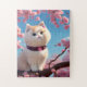 Um Gato Branco Adorável Em Um Quebra-cabeça De Varsóvia De Árvore Primavera.