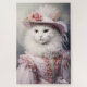 Este quebra-cabeça de quebra-cabeça antropomórfico apresenta um gato branco de cabelos longos vestindo um vestido cor-de-rosa estilo Rococo e um chapéu cor-de-rosa correspondente. Seria um belo presente para um entusiasta do quebra-cabeça que gosta de gatos.