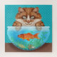 O desenho original deste quebra-cabeça de serra-de-vidro, que chama a atenção, mostra um gato malicioso, marrom-alaranjado, sorrindo e encarando - com olhos largos e famintos - um peixe dourado em sua tigela. O gatinho travesso tem as patas dentro do aquário enquanto o peixe laranja brilhante olha para ele. Este design de novidade único tem uma arte popular / um aspecto goótico ligeiramente escuro nele com uma série de humor desonesto. É perfeito para quem ama gatos e peixes.