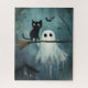 Quebra-cabeça Gato de Halloween e Espírito Voando na Broca