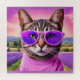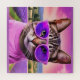 quebra-cabeça de quebra-cabeça com arte de fantasia caprichosa. Um gato-jazz numa tenda e óculos de sol roxos fica contra um pano de fundo de lavanda. Perfeito para quem ama gatos modernos, humor e vibrações no início do verão. com fantasia fantástica.