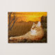 Táxi laranja de cabelo longo gatinho num fundo de sombras laranja paisagísticas amantes do quebra-cabeça