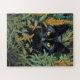 Gato e flores inspirados por Vincent van Gogh. Gato preto engraçado e caprichoso cercado por um grão e flores coloridas. O acessório perfeito para qualquer amante de gatos. Animais engraçados, arte floral. Pintura a óleo de arte, arte digital.