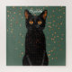 Quebra-cabeça Gato Preto Místico com Olhos Laranja e Brilho