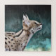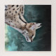 Um gato Serval africano, com uma atitude curiosa, em um fundo verde de cor verde.
