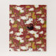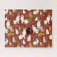 Quebra-cabeça em um padrão caprichoso de gatos em poses naturais, cercados por folhagem verde e flores, colocados contra um fundo vermelho burguês / marrom, criando uma estética encantadora e aconchegante