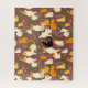 Quebra-cabeça num padrão caprichoso de gatos em poses naturais, cercados por folhagem verde e flores, colocado sobre um fundo marrom do café, criando uma estética encantadora e aconchegante.