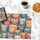 Esta quebra-cabeça de serra-de-vidro divertida apresenta filas de rabiscos de gato bonitos, brancos e coloridos em tons pastéis de laranja, amarelo, rosa, azul e verde. Esta quebra-cabeça bonita é perfeita para quem ama gatos ou aprecia arte moderna peculiar e caprichosa.
