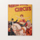 Gentry Bros. circo Miss Louise Hilton, o maior cavaleiro que o mundo já conheceu. Poster de circo mostrando Louise Hilton empoleirado em um cavalo branco, prestes a saltar sobre um cachecol segurado por um palhaço e um mestre do anel.