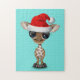 Características deste design adoráveis um girafa pequeno com um tema do Natal. O girafa do bebê está vestindo um grande chapéu vermelho e branco do papai noel com sua cabeça inclinada leve a um lado. A cabeça desproporcionado misturada com os detalhes na pele dá ao design uma combinação original de um olhar realístico e dos desenhos animados. Este design adorável é um animal temático original e do divertimento do Natal.