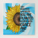 Bonito girassol amarelo desenhado com fundo colorido. Citação inspiradora. Lembre-se de onde quer que esteja plantado para florescer com amor e graça.