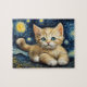 Gato Bonito com Estilo da Noite Estelar Van Gogh num mundo de fantasia, estilo de arte de fantasia para as crianças, quarto de bebê,