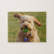 Esta bela quebra-cabeça mostra uma fotografia fofa de um adorável goldenodle tocando feitiço com uma bola de tênis no parque. Fotografia criada pela fotógrafa Maria Jeffs, prêmio vencedora.