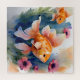Quebra-cabeça apresenta arte dourada aquática com dois peixes dourados entre flores cor-de-rosa e algas marinhas. Um trabalho de arte de retrato original de criatura do mar floral.