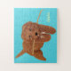 Um quebra-cabeça com imagens fofas de Golden Doodle. Você tem a opção de redimensionar ou substituir as imagens, alterar o fundo e revisar ou excluir o texto. Arte original de W.B.