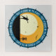 Design gráfico de golfe em disco com um putter, disco, cesto, pássaros e tipografia, com a menção "colocar plástico em seu lugar".