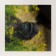 Um lindo gorila bebê sentado num campo de flores amarelas. Seus lindos olhos olhando para você.