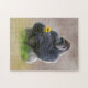 Um grande gorila senta-se no projecto profundo enquanto arranca nas pétalas de uma margarida amarela ou de uma flor de susan de olhos pretos. A luz solar brilha contra sua para trás. Esta imagem da fantasia é ajustada contra um fundo silenciado dos marrons e dos verdes. Personalize adicionando seu próprio subtítulo, nome ou monograma ao produto deste amante dos animais. O fundo é uma versão alterada de um por sucatas e por gráficos de Karens no design da sucata de Digitas.