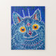 Quebra-cabeça com a pintura animal de Louis Wain A Cat in Gothic Style (1860-1939). Um gato azul psíquico olha amigavelmente com os olhos amarelos para o espectador. Um presente maravilhoso para amantes de gatos e arte inglesa.