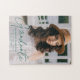 Comemore o formando com um quebra-cabeça de graduação personalizado. O quebra-cabeça de graduação apresenta a foto do formando com "Formando" em uma cobertura verde moderna de roteiro de caligrafia. Personalize o quebra-cabeça de graduação de fotos adicionando o nome do formando, o nome da escola e o ano de graduação.
