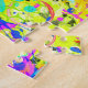 Esta quebra-cabeça tem as pistas do verão, incluindo: amarelo, verde limão, rosa, laranja, turquesa, aqua, preto, coral, azul e muito mais. Usei camadas sobre camadas de cores e texturas em graus variados de opacidade para dar essa profundidade e o mais importante...DIVERSÃO!