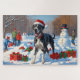 Quebra-cabeça Grande Dane correndo em neve com chapéu de Natal