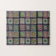 Imagem de 9 pontos da praça da vovó em rosa, verde, azul, branco, cinza, laranja, amarelo, com bordas pretas. Os 9 quadrados centrais estão ligados para criar cobertor.