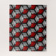 Quebra-cabeça num clássico padrão quimono japonês de gruas estilizadas, arranjadas em um padrão de hexágonos, em cinzas/cinzas vermelhas, leves e médias profundas, sobre fundo preto
