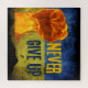 A Edgy Ucrânia apoia a quebra-cabeça com a bandeira amassada da Ucrânia, o punho esmagador e o "Nunca Desista" em fontes angustiadas.