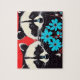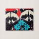 Quebra-cabeça Guaxinins Adoráveis Com Flores Azuis Fundo Vermelh