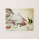 Uma gueixa no quimono impressionante com um pouco um que esconde atrás de suas saias. Esta é uma reprodução de uma forma de arte, de um woodblock ou de um ukiyo-e japonês tradicional.