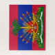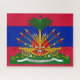 Casaco de armas do Haiti. A casaco de armas do Haiti foi introduzida originalmente em 1807 e tem aparecido na sua forma atual desde 1986. Mostra seis bandeiras cortadas do país, três em cada lado, que estão localizadas antes de uma palmeira e canhões em um gramado verde. Na grama foram encontrados vários itens, como um tambor, uma corneta, armas compridas e âncoras de navio. Acima da palmeira, há um boné de Phrygian colocado como símbolo de liberdade. No gramado entre o tambor e a fita supostamente havia dois pedaços de corrente com um elo quebrado simbolizando a cadeia quebrada de escravidão. A fita tem o lema: L'Union Fait La Force (Francês, "Unity Is Resistth"). Isto não deve ser confundido com o lema nacional do Haiti, que, de acordo com a Constituição do Haiti, é "Liberdade, Igualdade, Fraternidade".