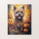 Quebra-cabeça Halloween Cairn Terrier Com Pumpkins Assustado