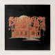 Halloween Creepy Haunted House By http://www.thefabricseal.zazzle.com é um lápis a cores assustador ilustrando uma assustadora mansão de casa assombrada. As folhas de folhagem coloridas do outono, as grandes árvores altas e as grandes casas de artesão de madeira brilham com a luz noturna da colheita de cheio amarelo de cor laranja no fundo iluminando outra divertida e assustadora cheio noturna do Dia das Bruxas de goblins, ghouls e truques ou tratadores se perguntando por toda a cidade.