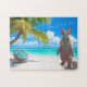Happy Easter Florida Style! The design on this tropical-themed holiday jigsaw puzzle features a vibrant tropical beach setting with palm tree and hanging rattan swing. The calm turquoise ocean is in the background. A life-size Easter bunny completes the colorful scene! The text reads "Happy Easter from Florida." The Easter puzzle is the perfect low-cost gift for kids, grandkids, teachers, neighbors, co-workers, hostess, the elderly, and caregivers. Also makes a great addition to any Easter basket! Please browse our complete collection of tropical-themed Easter cards, gifts, and home decor. Special design requests accepted.