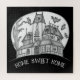 Add a spooky touch to your Halloween decor with this hand-drawn haunted house surrounded by flying bats. Perfect for prints, cards, stickers, or seasonal merchandise.